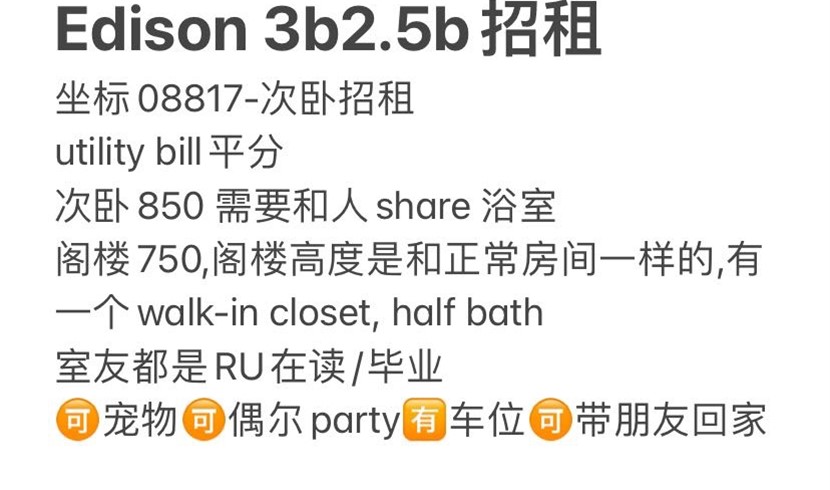 2 卧 1 浴 - 车位 - Hana rd Edison 08817, Edison, NJ 08817