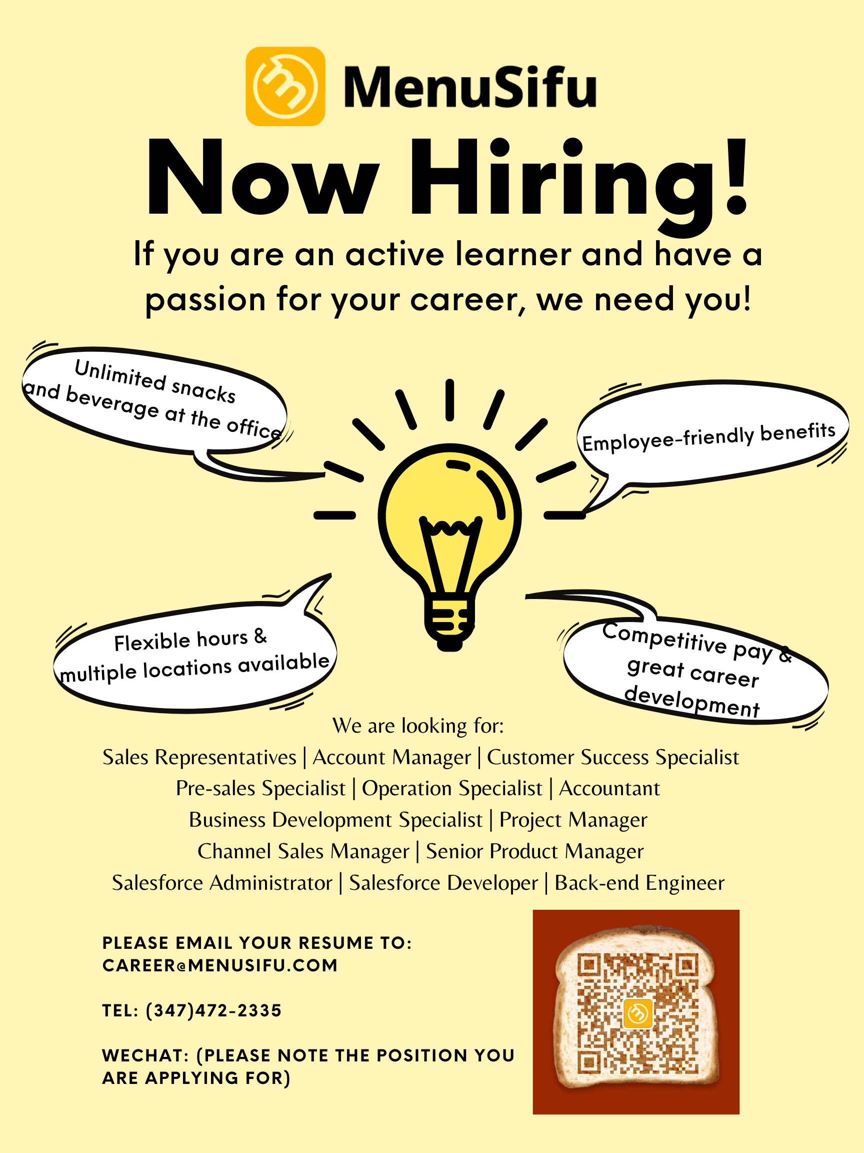 MenuSifu is recruiting full-time talents