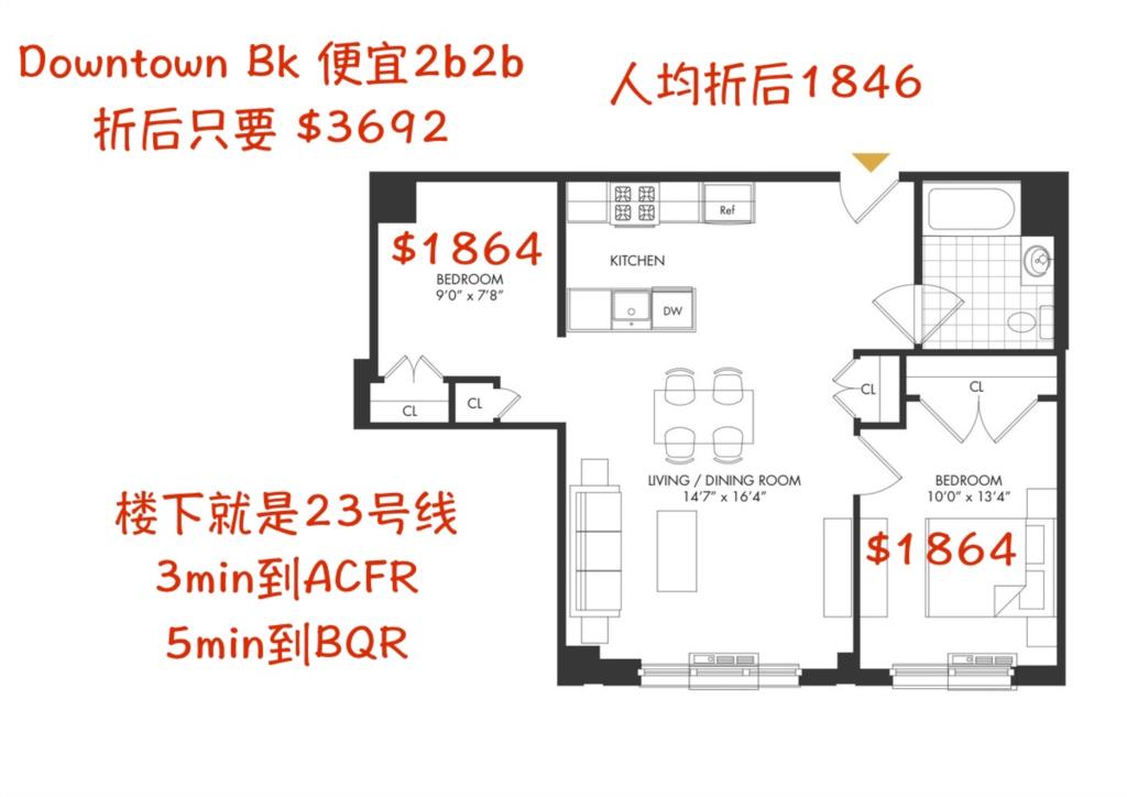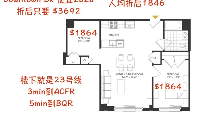 2 卧 1 浴 - 车位 - jay st