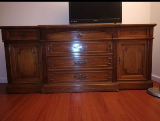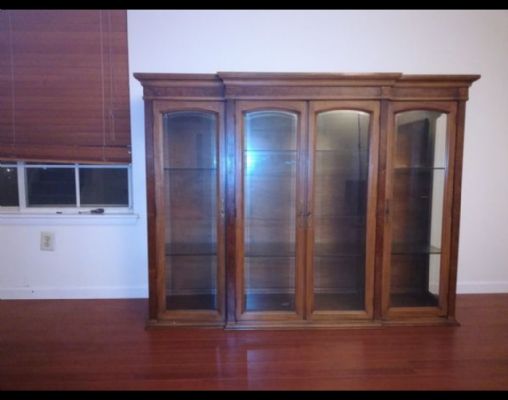 全木制柜子,金属配件齐全,原为餐厅陈列式碗柜,但上下是可以分开的。下面的柜子一直用来做电视柜,抽屉很多可以做衣柜或办公。上层为玻璃柜,可以陈列。几乎不要钱了,需自己搬运 提醒:未看见实物之前不要急着汇款或交保证金避免受骗。 家具-窗帘-灯饰-家饰相关图片